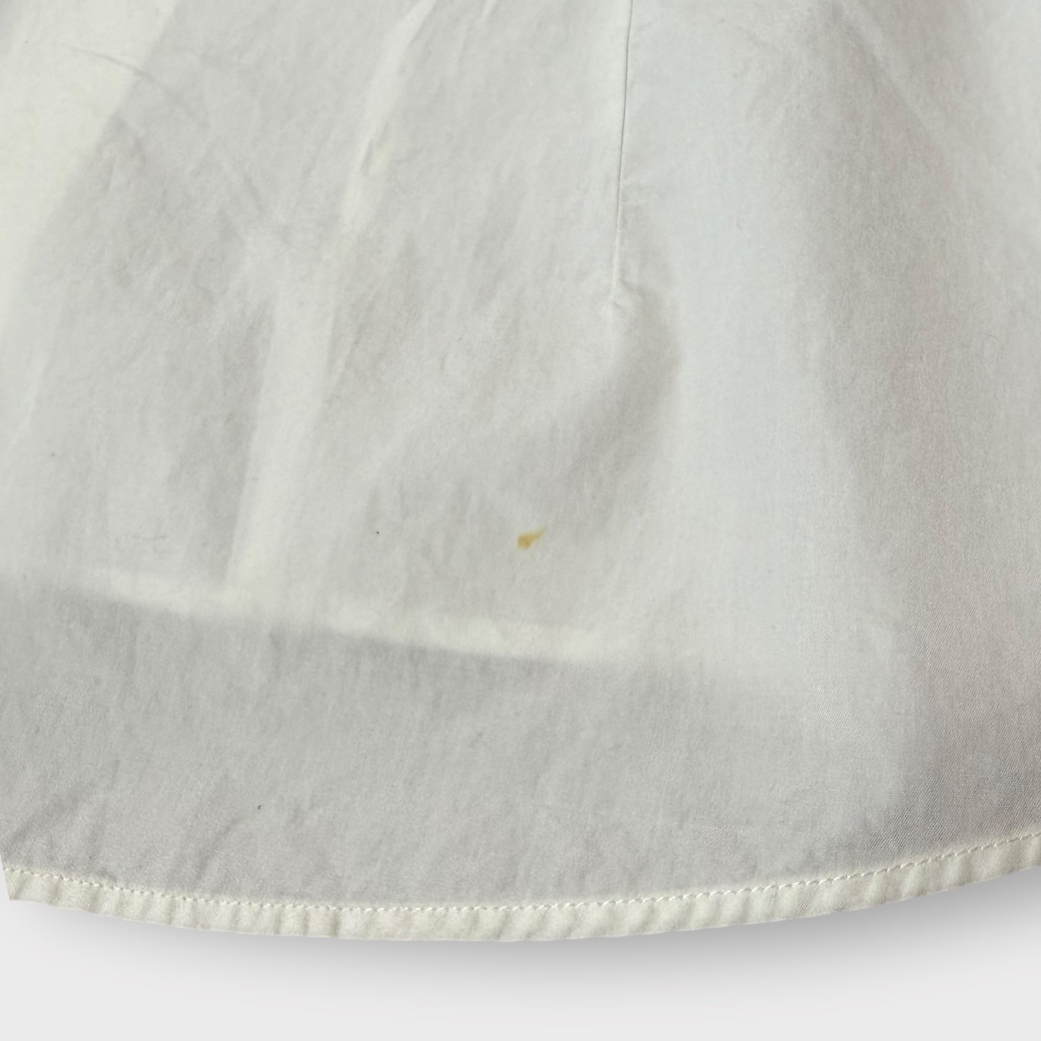 Condition: Excellent, could use an iron and there's very small spots of discoloration pictured.